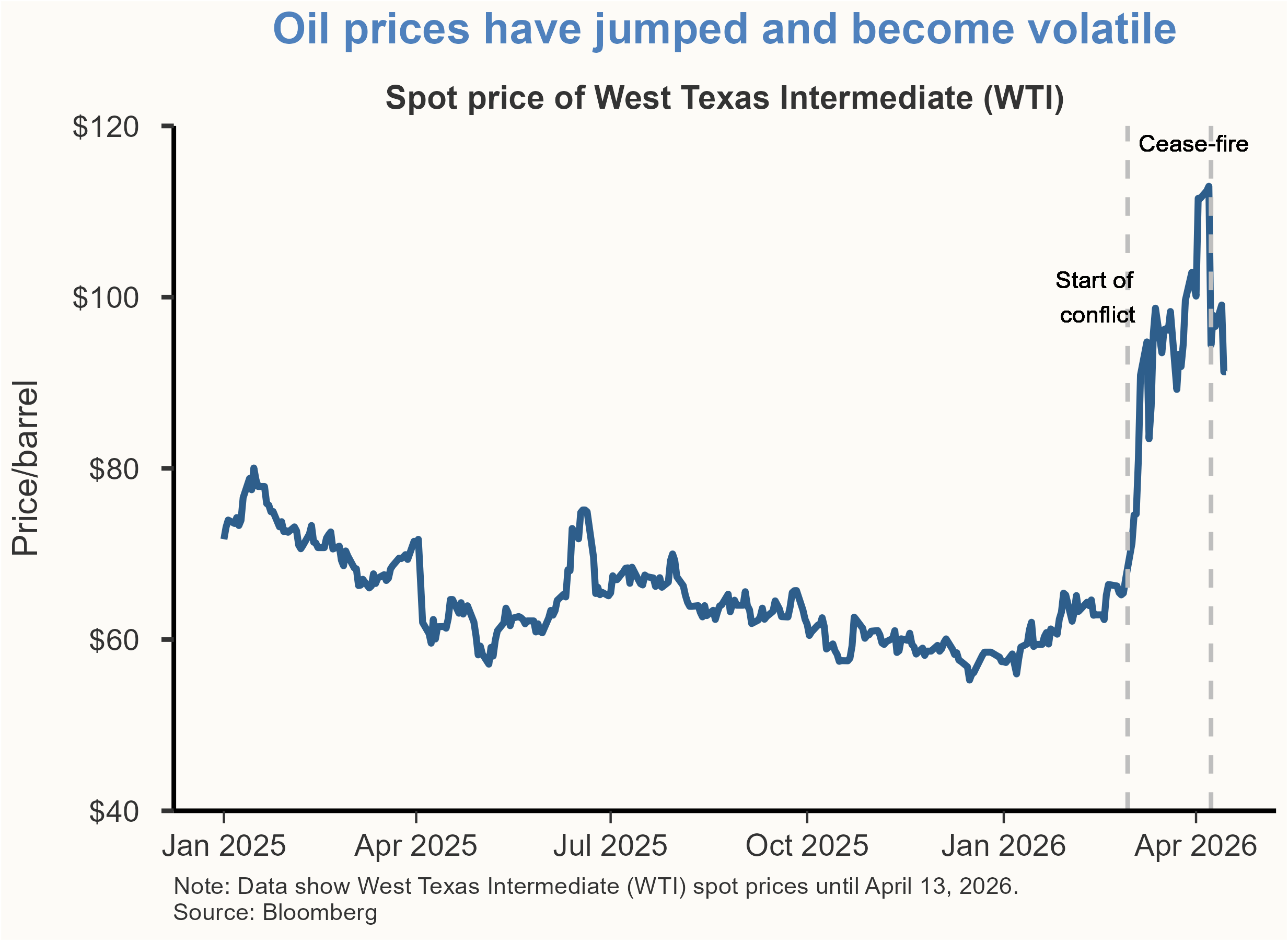 Oil prices have surged and remained volatile in response to the ongoing conflict in the Middle East, significantly clouding the economic outlook. The increase in oil prices has been accompanied by rising costs for critical production inputs, including fertilizers, aluminum, helium, and plastics. While the latest information from oil futures markets suggests a partial price recovery by the third quarter of 2026, the duration of energy market disruptions remains highly uncertain. The ultimate economic impact will depend critically on how long these disruptions persist; if sustained, high energy prices risk spilling over into a broader set of goods and services while weighing on real incomes, employment, and output growth.