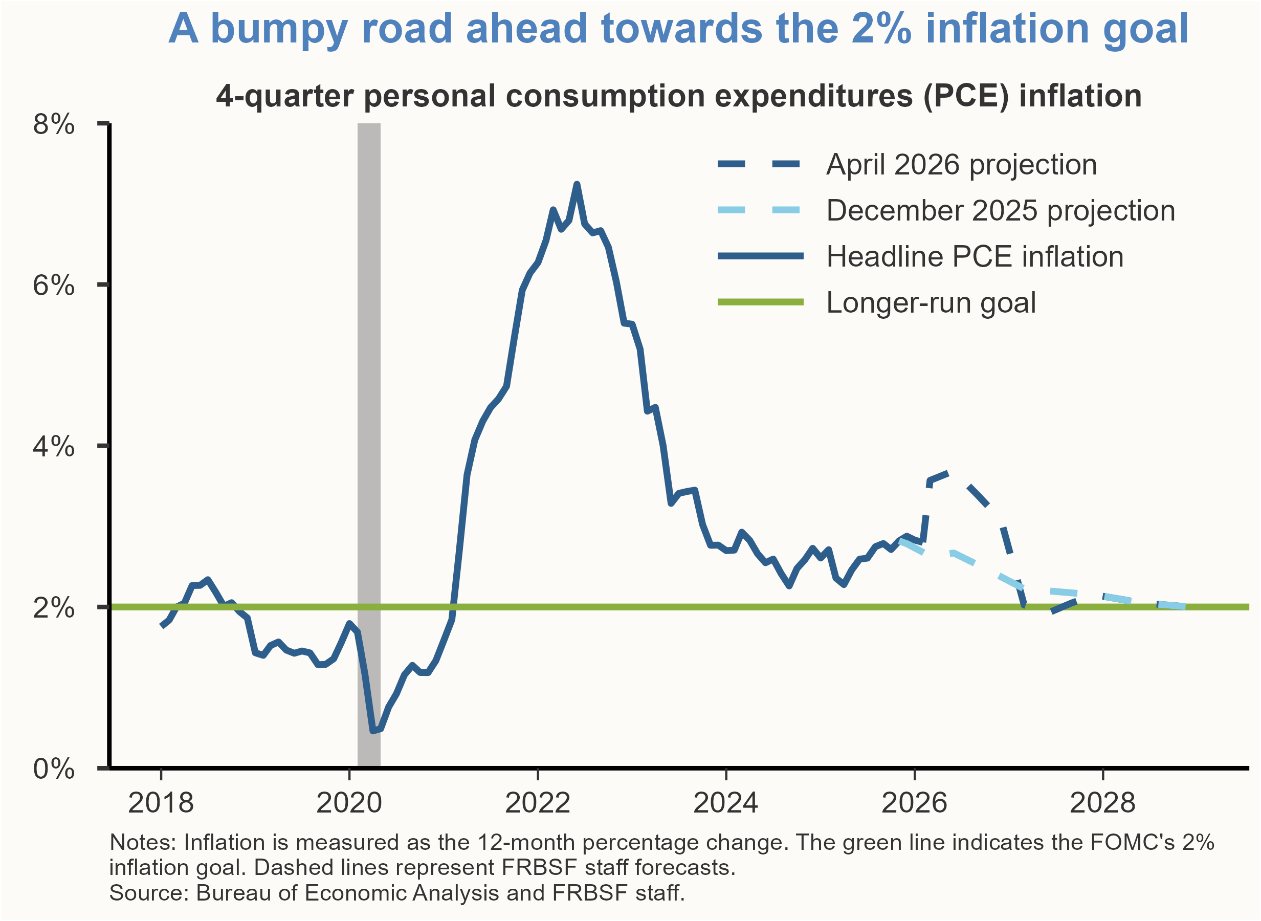 We expect acyclical factors, including higher energy costs, to exert upward pressure on inflation in the coming months. However, we expect the impact from these factors to largely dissipate in the second half of the year, under our assumption that the tariff effects on prices fade and oil prices stabilize or recede towards pre-conflict levels. We now project that inflation will reach the Federal Reserve’s 2% goal by mid-2028, although there are considerable upside risks to our projected inflation path given the high uncertainty surrounding the duration of the conflict. Our current outlook is for headline PCE inflation to rise to approximately 3% by the end of 2026 before declining gradually towards 2% by the end of 2027.