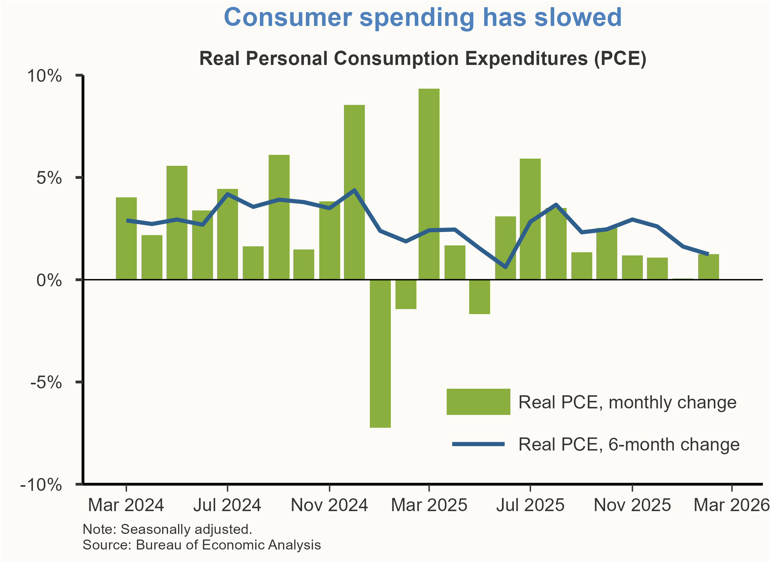 Under our baseline projection, we anticipate moderate real GDP growth ahead, but the conflict has introduced significant downside risks and elevated uncertainty about near-term economic activity. Our growth projections for the first half of 2026 have been revised down, reflecting the impact of higher oil prices on real incomes and consumer spending.